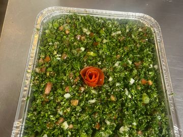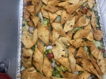 Delicious homemade dough made daily , zaatar with cucumber, tomatoes, and fresh mint.