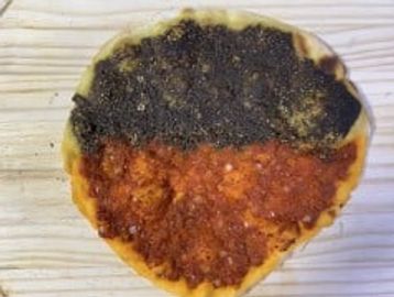 Homemade fresh dough, cheese and spicy , and sesame seeds on top