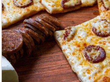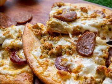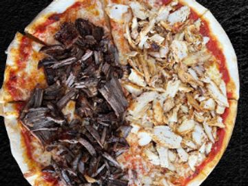 Homemade fresh dough, fresh homemade sauce made with fresh tomatoes, topped with cheese, and your choice of meat.