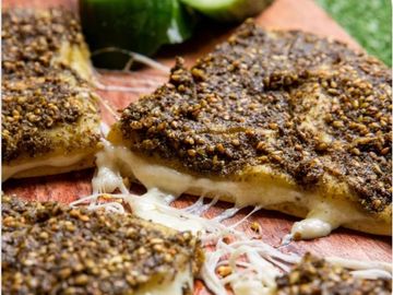 Homemade fresh dough, double dough layer one cheese and other layer zaatar