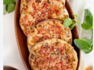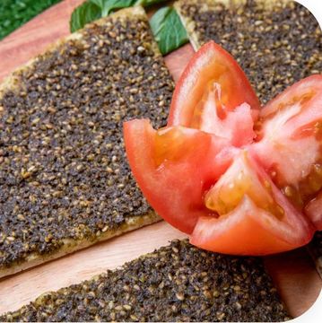 Homemade fresh dough, zaatar, onions , tomato, spicy , and olive oil