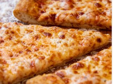 Homemade fresh dough, fresh homemade sauce made with fresh tomatoes, topped with cheese.